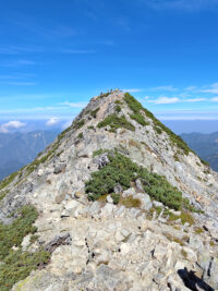 由唐松岳山莊出發,上午挑戰攀爬路段「牛首鎖場」,到達五龍山莊後,輕裝來回五龍岳山頂。