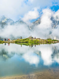 從唐松岳到五龍岳的緃走路線是日本北阿爾卑斯山脈最受歡迎、最具代表性的遠足路線之一。這條路線風景多變,擁有優美的山脊線和豐富多彩的攀登體驗。「八方池」作為緃走線上的第一個門戶,以其獨特的山中湖泊風景和周圍壯麗的山岳景象吸引遊客,能夠反映出天空以及周圍的山峰,如同一面天空之鏡。