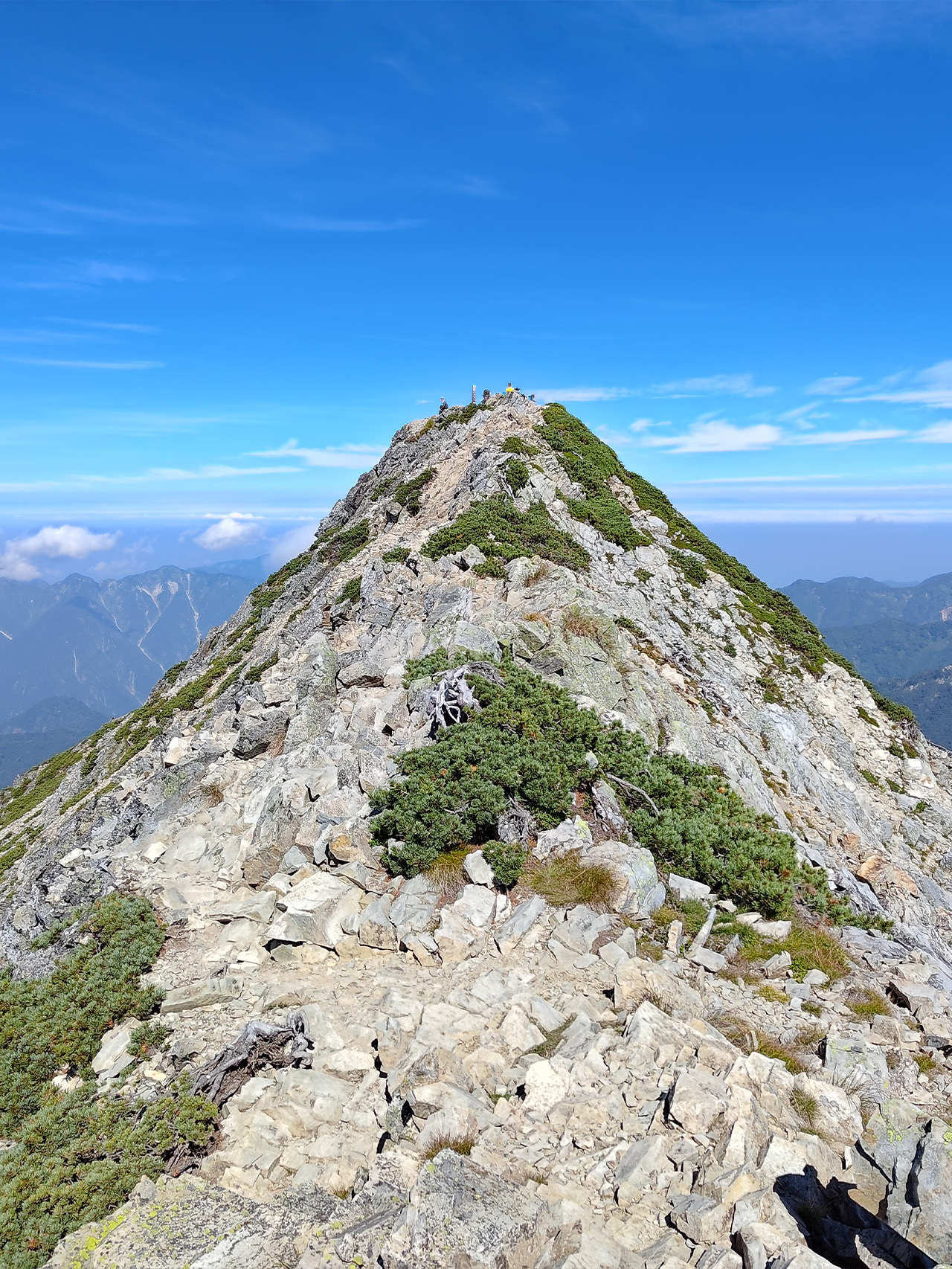 由唐松岳山莊出發,上午挑戰攀爬路段「牛首鎖場」,到達五龍山莊後,輕裝來回五龍岳山頂。