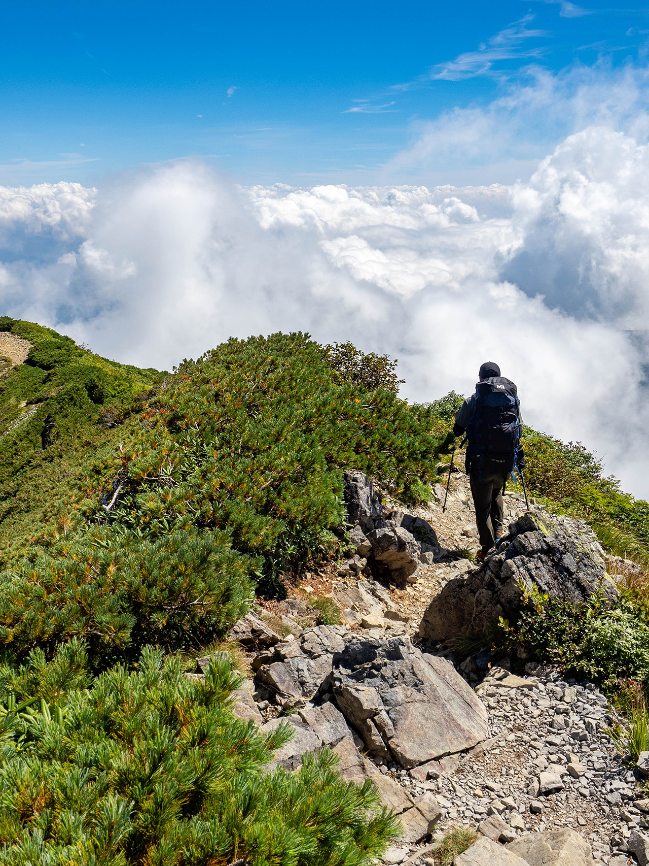 從唐松岳到五龍岳的緃走路線是日本北阿爾卑斯山脈最受歡迎、最具代表性的遠足路線之一。這條路線風景多變,擁有優美的山脊線和豐富多彩的攀登體驗。「八方池」作為緃走線上的第一個門戶,以其獨特的山中湖泊風景和周圍壯麗的山岳景象吸引遊客,能夠反映出天空以及周圍的山峰,如同一面天空之鏡。